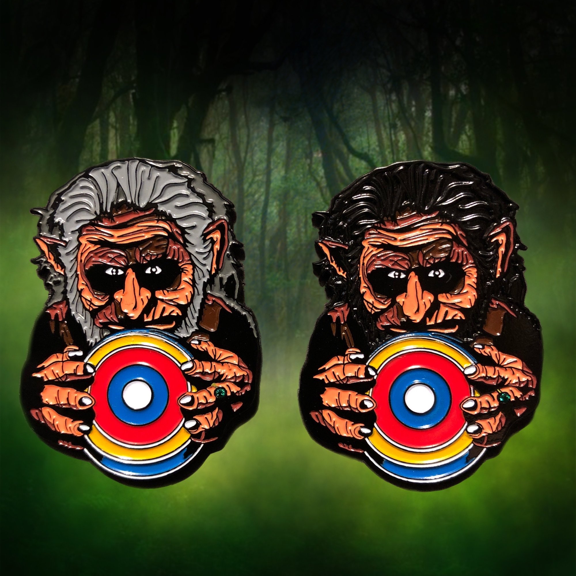 Designed for 12 Gauge Gore, this soft enamel pin comes in at 2" tall and has double backing posts, and even cooler: a green gemstone ring!