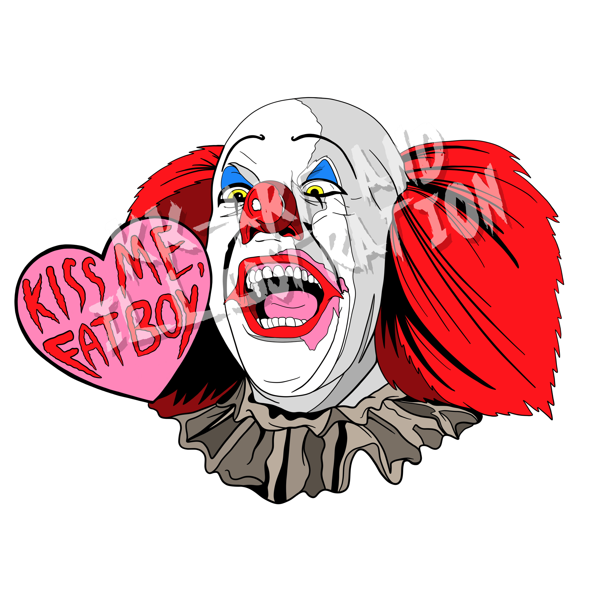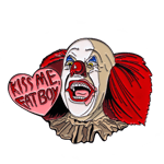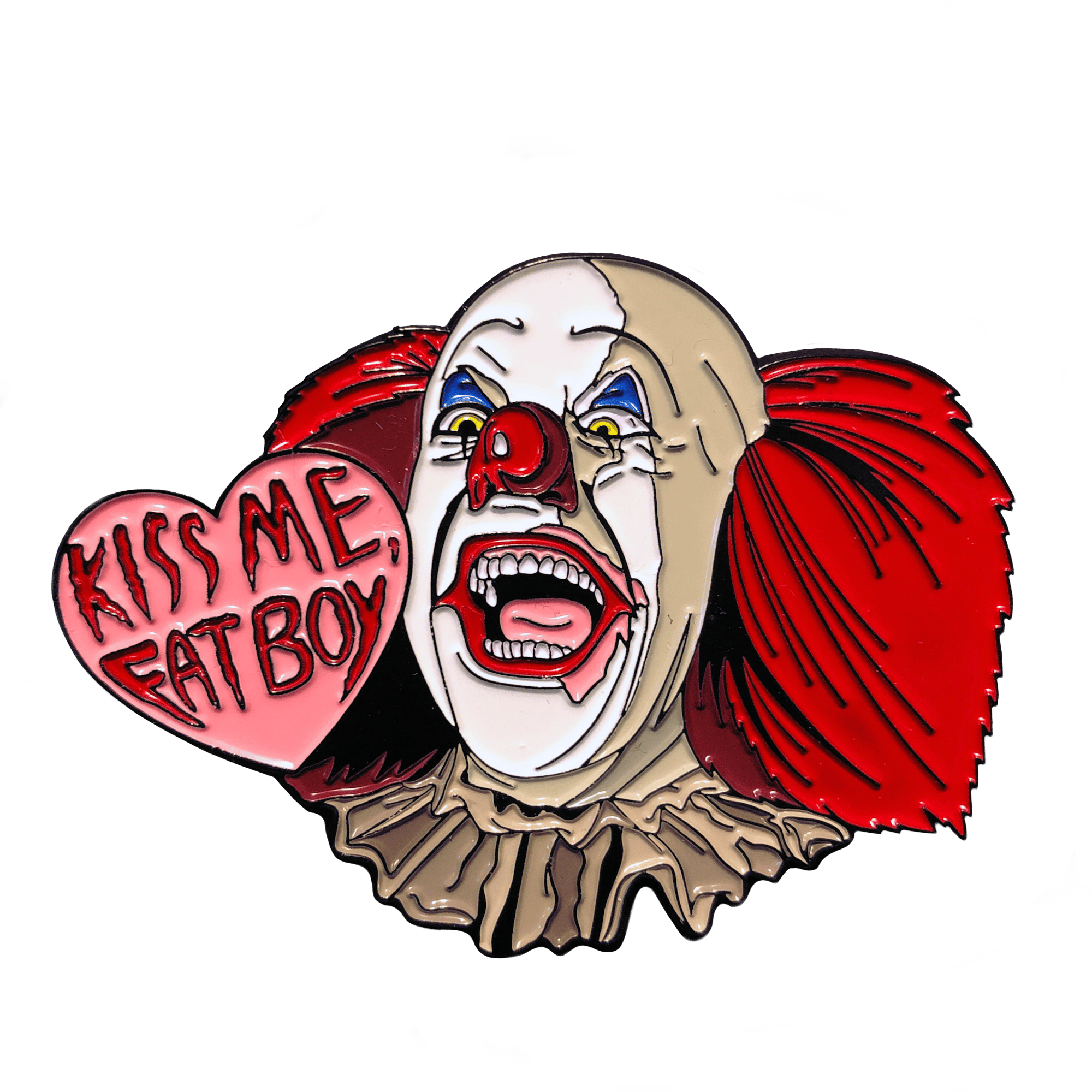 2.5" wide soft enamel pin, 4"x6" valentine's card (one sided), and a 3.2" wide sticker of the original art.