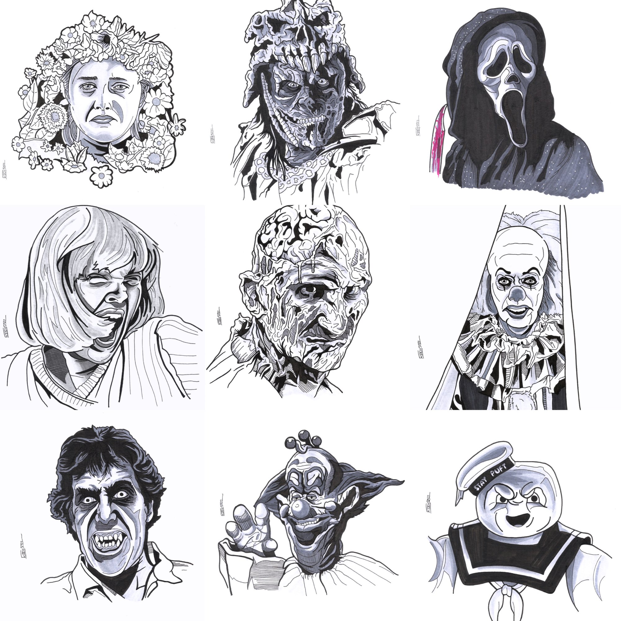 Approx. 6.75"x10.25" (comic book sized) original art pieces finished with ink and marker. All come bagged and boarded. Ships flat.